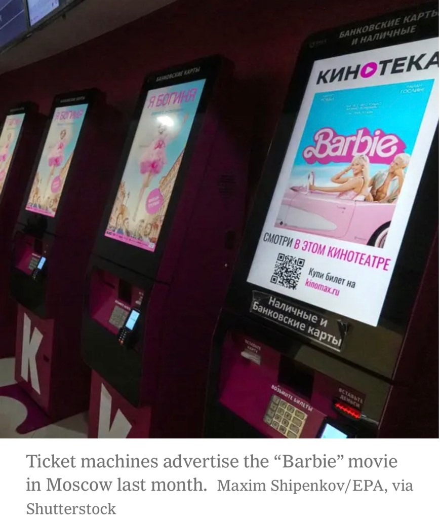 Read full report: https://www.nytimes.com/2023/10/04/world/europe/barbie-russia-hollywood-ukraine-war.html?searchResultPosition=1