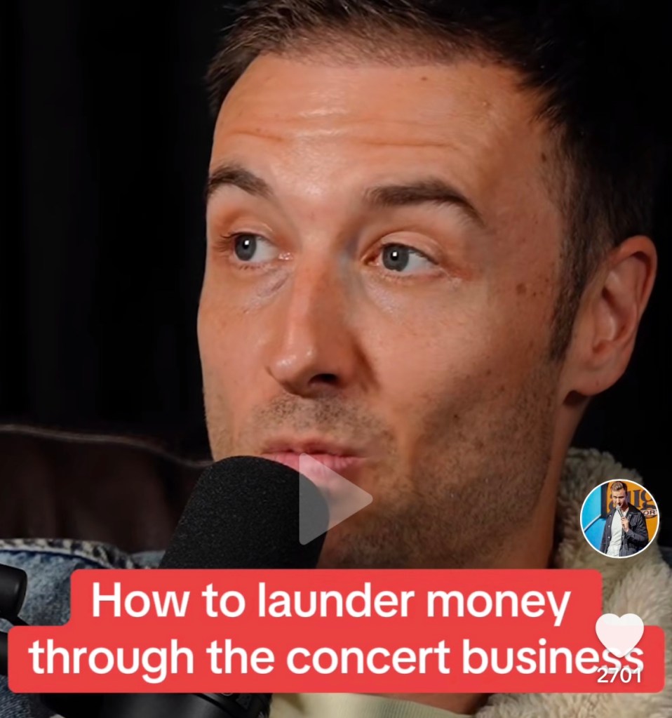 Written by FinCrimeNovember 18, 2023 Money Laundering via the Concert Business Reported by Johnny Mitchell Click Link to Watch Video: https://www.tiktok.com/t/ZT8Uy63Jf/ Share on X (Opens in new window) X Share on Facebook (Opens in new window) Facebook Share on LinkedIn (Opens in new window) LinkedIn Share on Reddit (Opens in new window) Reddit Share on WhatsApp (Opens in new window) WhatsApp Like Loading... Leave a comment Cancel reply Δ