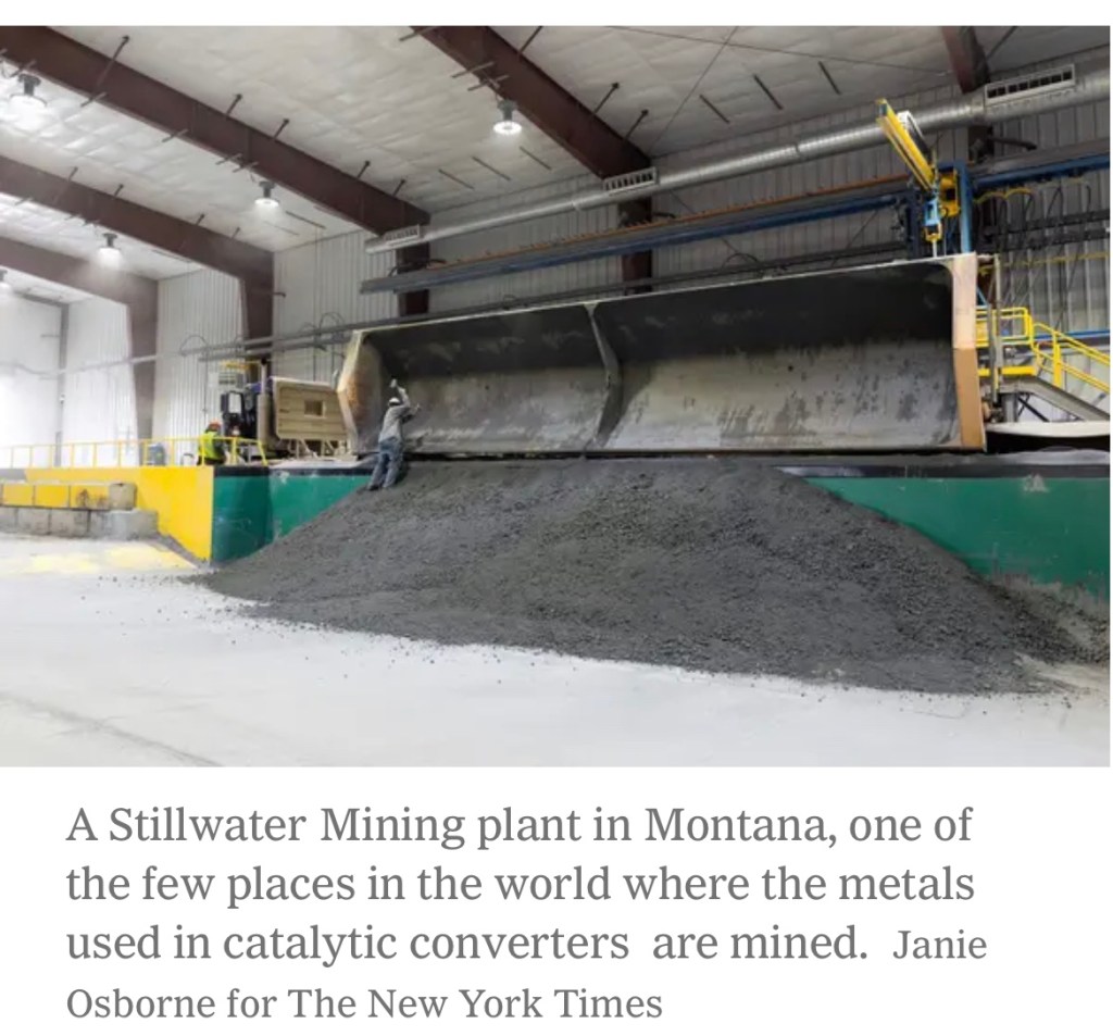 The mined ore contains platinum, palladium and rhodium, three of the earth’s rarest, most expensive metals — and vital components in the millions of catalytic converters that reduce polluting emissions from gasoline-powered vehicles.
