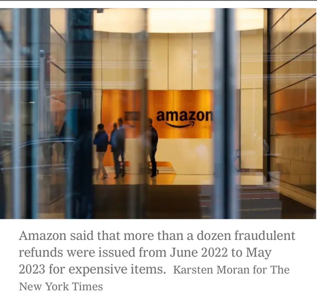 Read full report: https://www.nytimes.com/2023/12/10/business/amazon-refund-fraud-lawsuit.html