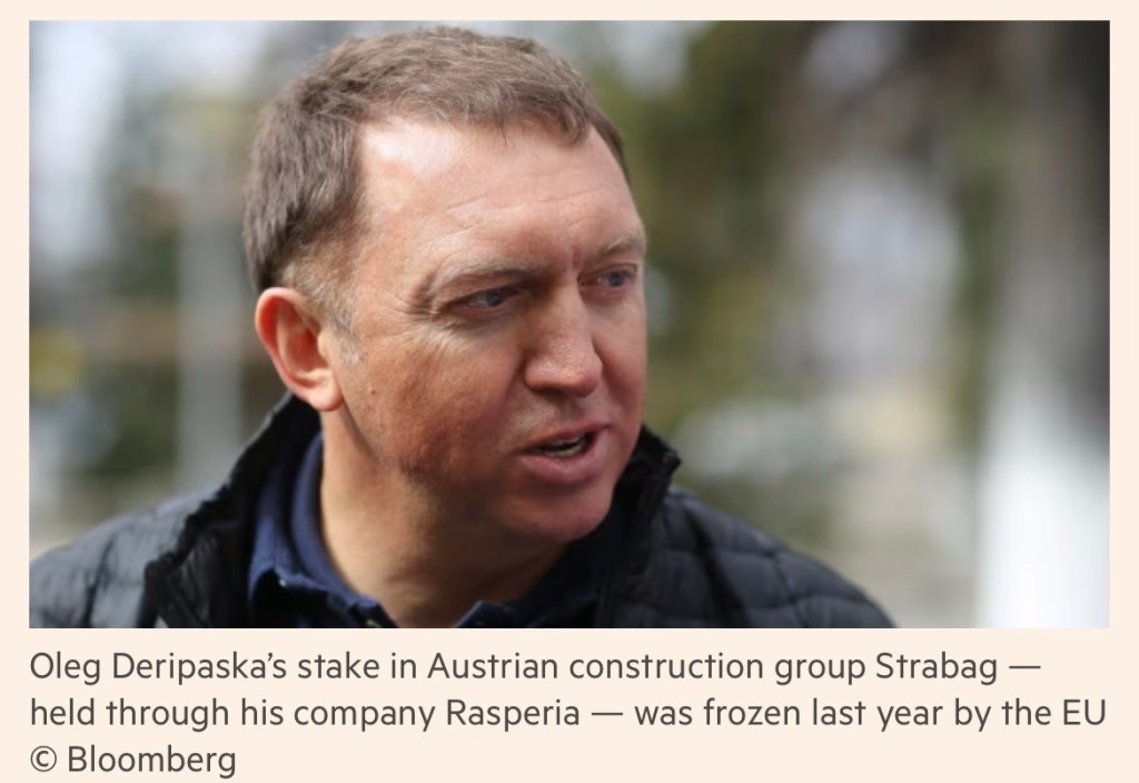 Deripaska’s stake in Strabag — held through his company Rasperia — was frozen last year by the EU in response to what the bloc said was his complicity in Russia’s brutal war of aggression in Ukraine.