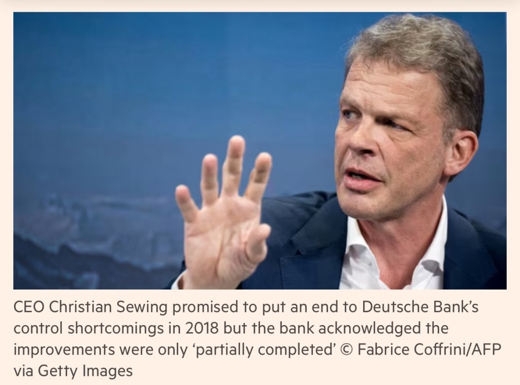 Sewing promised to put an end to Deutsche Bank’s long-running legacy of control shortcomings and misconduct scandals after becoming chief executive in early 2018, forking out more than €2bn to improve internal control systems.
