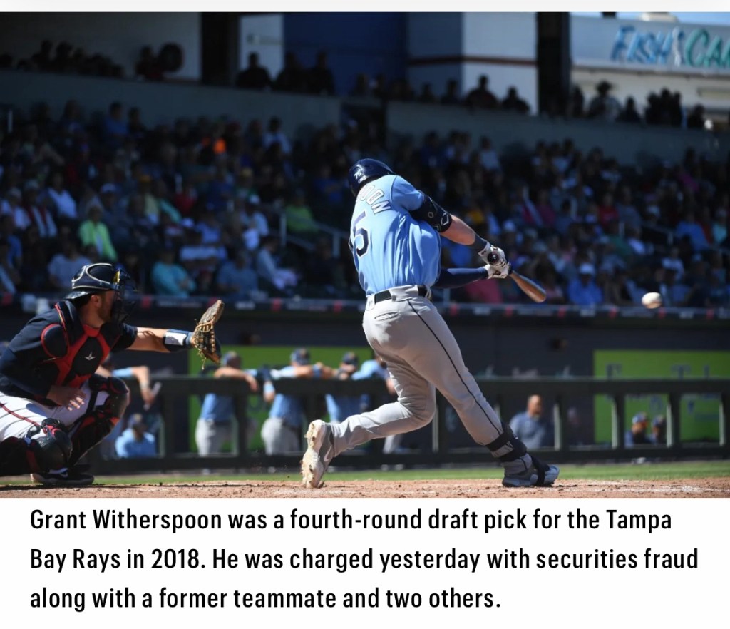 The three players, Austin Bernard, Jordan Qsar and Grant Witherspoon are connected because Qsar, 28, and Bernard, 27, attended Pepperdine University together and Qsar and Witherspoon, 27, were both drafted by the Tampa Bay Rays in 2018—Witherspoon in the fourth round. They became close friends and roommates, authorities said. Now, all three are facing a battery of charges related to conspiracy and securities fraud and could see 20 years in prison and $5 million in fines, according to the U.S. Attorney’s Office for the Southern District of California. A fourth player, Chase Lambert, who was drafted by the Pittsburgh Pirates in 2018 and also attended Pepperdine with Qsar and Bernard, was named in a Securities and Exchange Commission complaint yesterday. The SEC said the squad made nearly $200,000 from illegally trading.
