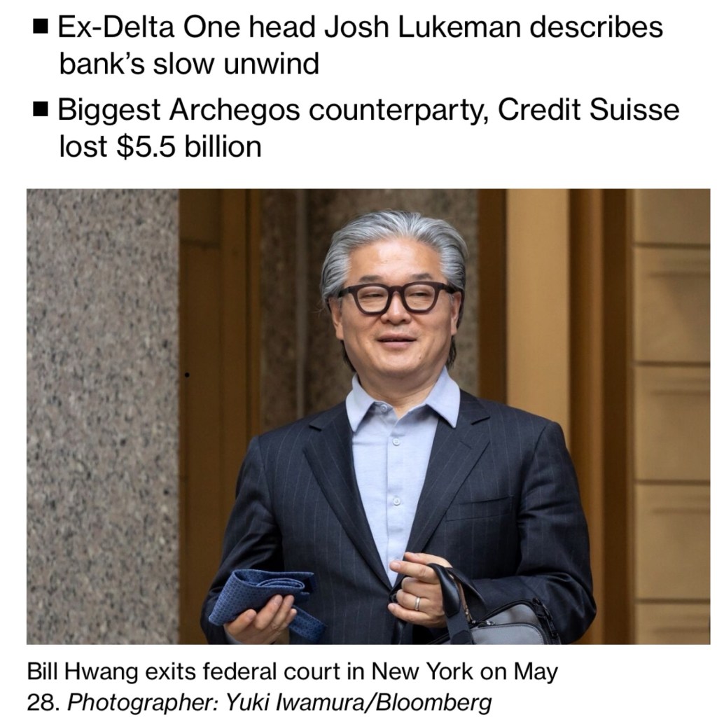 Read full report: https://www.bloomberg.com/news/articles/2024-05-28/credit-suisse-s-archegos-debacle-takes-hwang-trial-spotlight