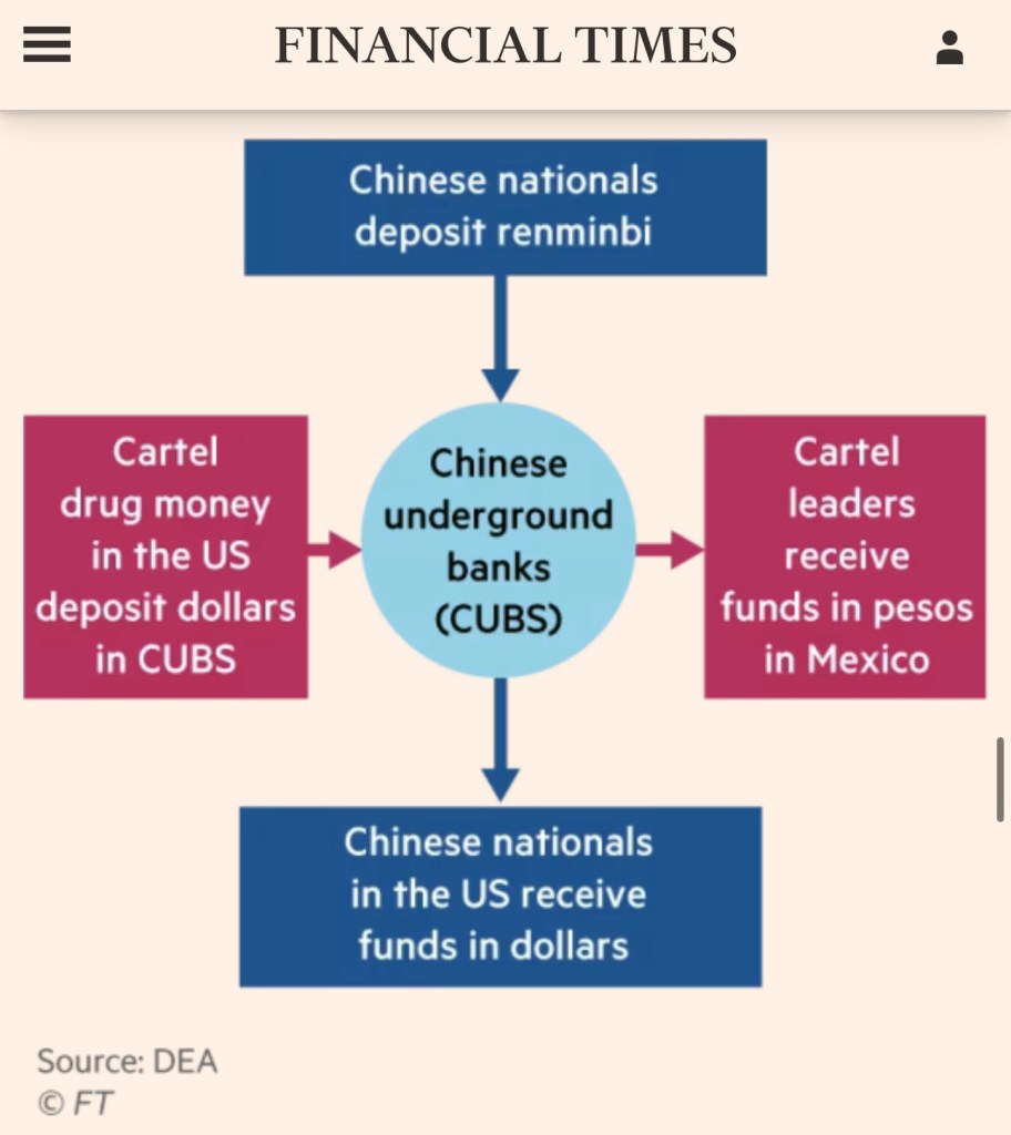 The DEA initially thought the cash deliveries were the routine result of the soaring sales of fentanyl in the US. But during the course of their investigation, they suspected the drop-offs were also part of a sophisticated and growing form of illicit finance that involves so-called Chinese underground banks and the Mexican drugs cartels.