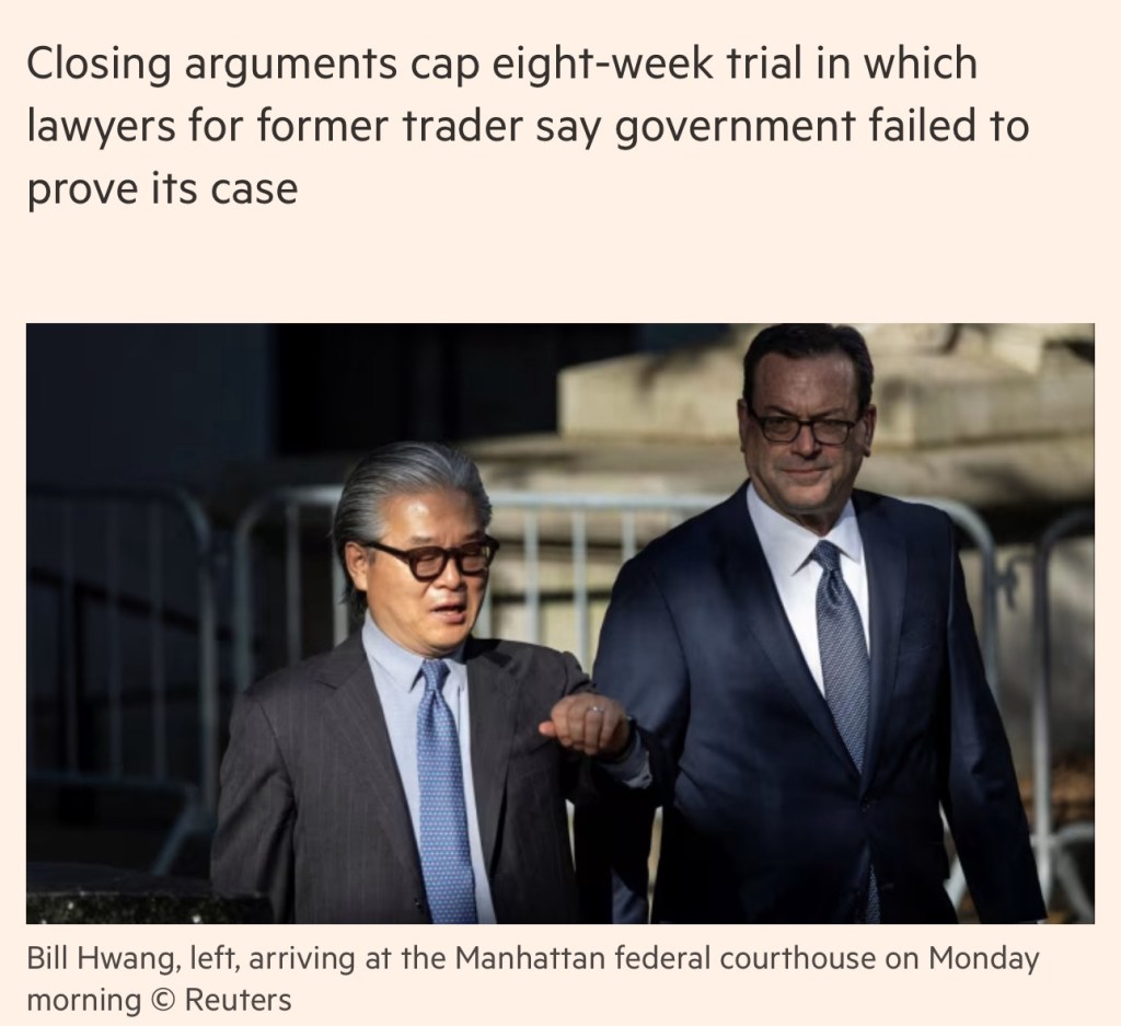 A lawyer for Hwang, Barry Berke, countered that the government had “worked backwards” in trying to build a criminal case after Archegos’ implosion and had “been in search of a theory” as to how exactly Hwang stood to benefit from building large positions in a handful of shares.