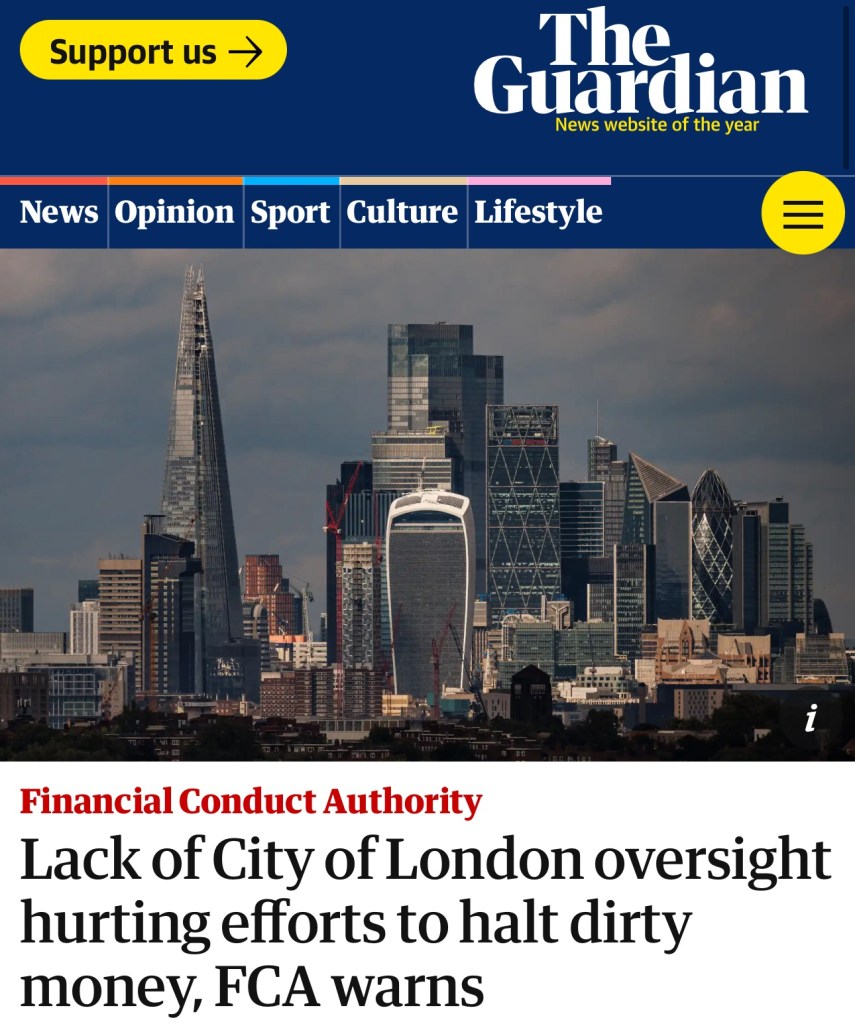 Read full report: https://amp.theguardian.com/business/2024/sep/23/concerns-lack-of-city-of-london-oversight-hurting-efforts-to-halt-dirty-money