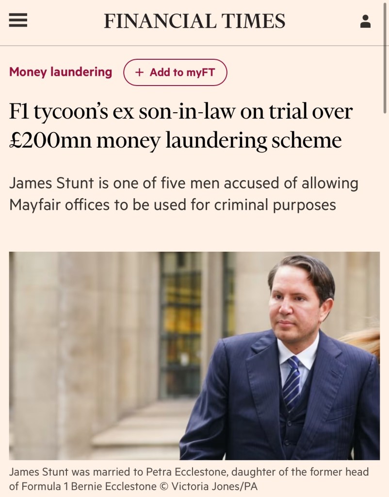 The former son-in-law of Formula 1 head Bernie Ecclestone was accused of being part of a scheme that allowed criminals to funnel more than £200mn of “dirty money” into the banking system over two years.
