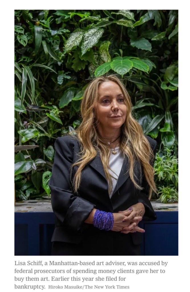 Read original report: https://www.nytimes.com/2024/10/17/arts/design/art-adviser-wire-fraud-lisa-schiff.html?searchResultPosition=1