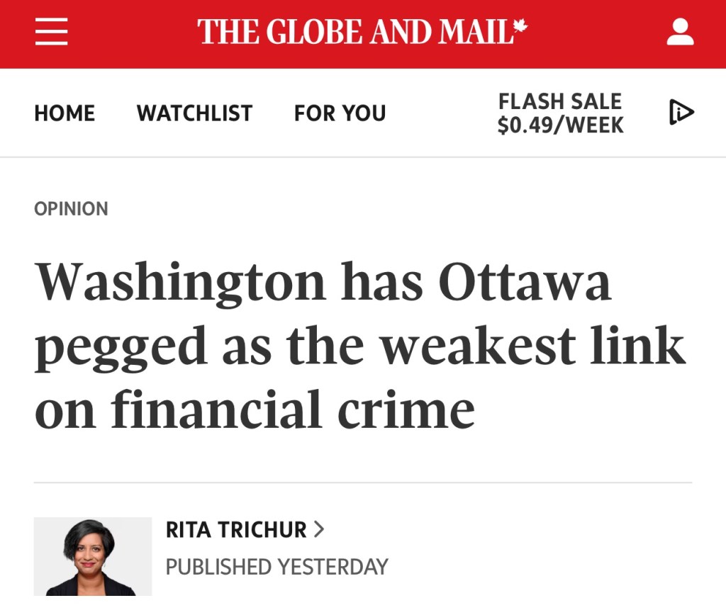 Read full report: https://www.theglobeandmail.com/business/commentary/article-washington-has-ottawa-pegged-as-the-weakest-link-on-financial-crime/
