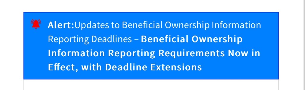 In light of a December 23, 2024, federal Court of Appeals decision, reporting companies, except as indicated below, are once again required to file beneficial ownership information with FinCEN. However, because the Department of the Treasury recognizes that reporting companies may need additional time to comply given the period when the preliminary injunction had been in effect, we have extended the reporting deadline as follows: