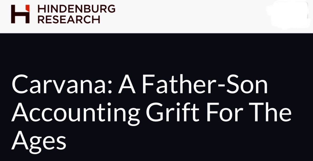 Hindenburg Research’s report on Carvana, titled “Carvana: A Father-Son Accounting Grift For The Ages,” raises serious concerns about the company’s financial practices and insider activities. The report alleges that Carvana’s recent financial improvements are superficial, driven by accounting manipulations and lax underwriting standards, rather than genuine business growth. This facade has reportedly enabled insiders to profit significantly through stock sales, even as the company’s long-term viability remains questionable.