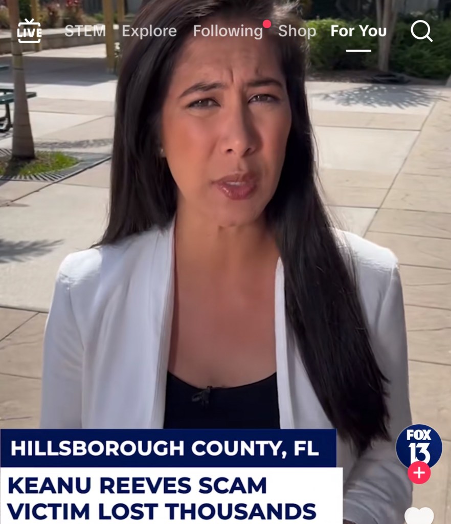 Written by FinCrimeApril 27, 2025 Must Watch: Keanu Reeves AI Bitcoin Scam Video Report by TikTok – Fox 13 Share on X (Opens in new window) X Share on Facebook (Opens in new window) Facebook Share on LinkedIn (Opens in new window) LinkedIn Share on Reddit (Opens in new window) Reddit Share on WhatsApp (Opens in new window) WhatsApp Like Loading... Leave a comment Cancel reply Δ