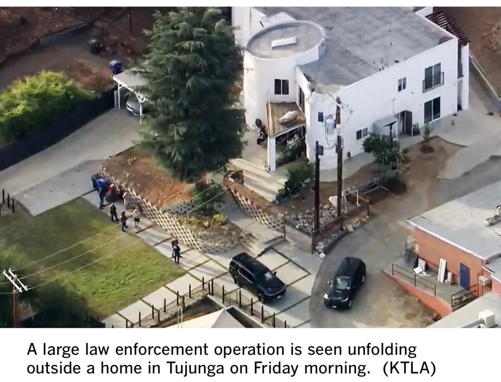 On Friday, agents with the U.S. Postal Service, Internal Revenue Service and U.S. Department of Labor served a warrant at the home around 6 a.m., according to the El Monte Police Department, which provided assistance along with the FBI.